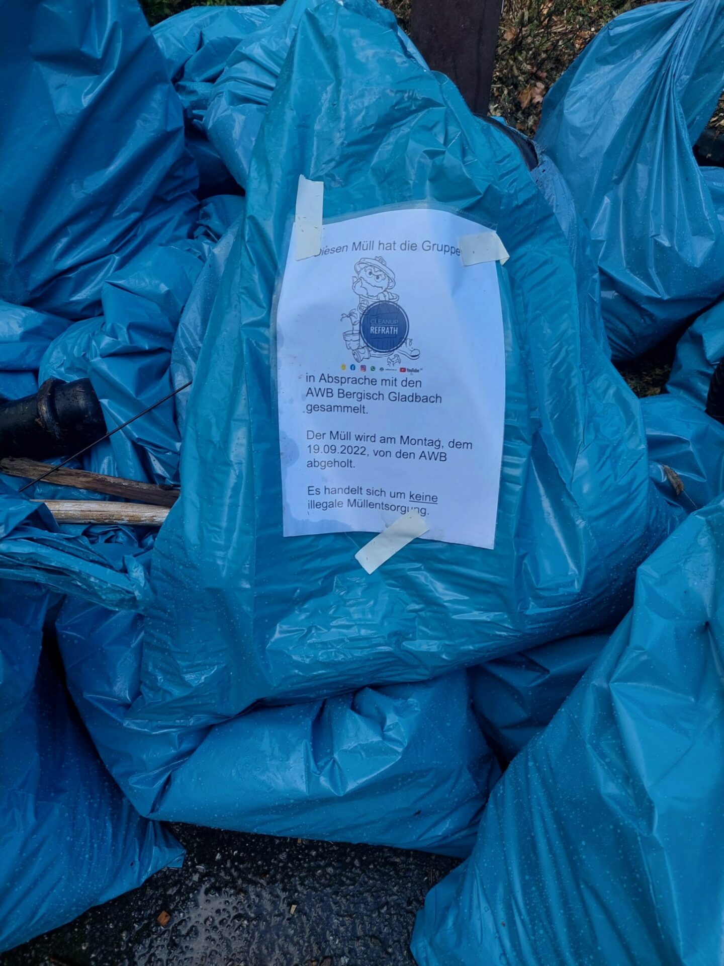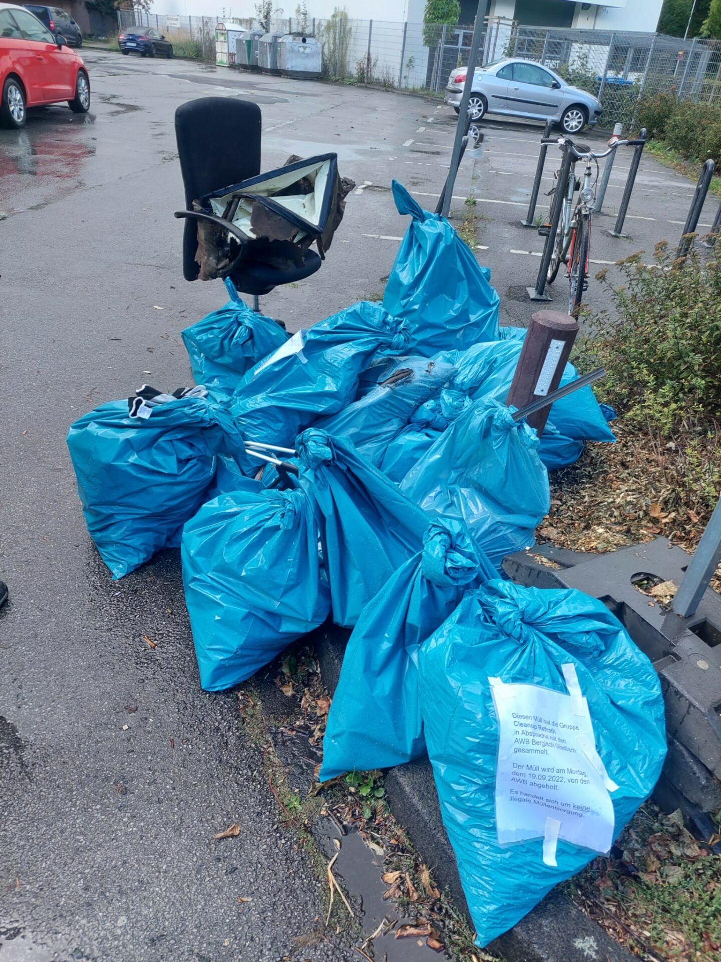 “Trotz regnerischen Wetters haben wir heute mit ca. 30 Teilnehmern anlässlich des World Cleanup Day 2022 eine Rekordsammlung mit Cleanup Refrath abgeliefert. Mit vielen neuen „Ersttätern“, über die wir uns sehr freuen, haben wir uns in mehrere Gruppen aufgeteilt und an verschiedenen Orten im Refrather Zentrum sage und schreibe 178 Kilogramm Müll aufgesammelt.