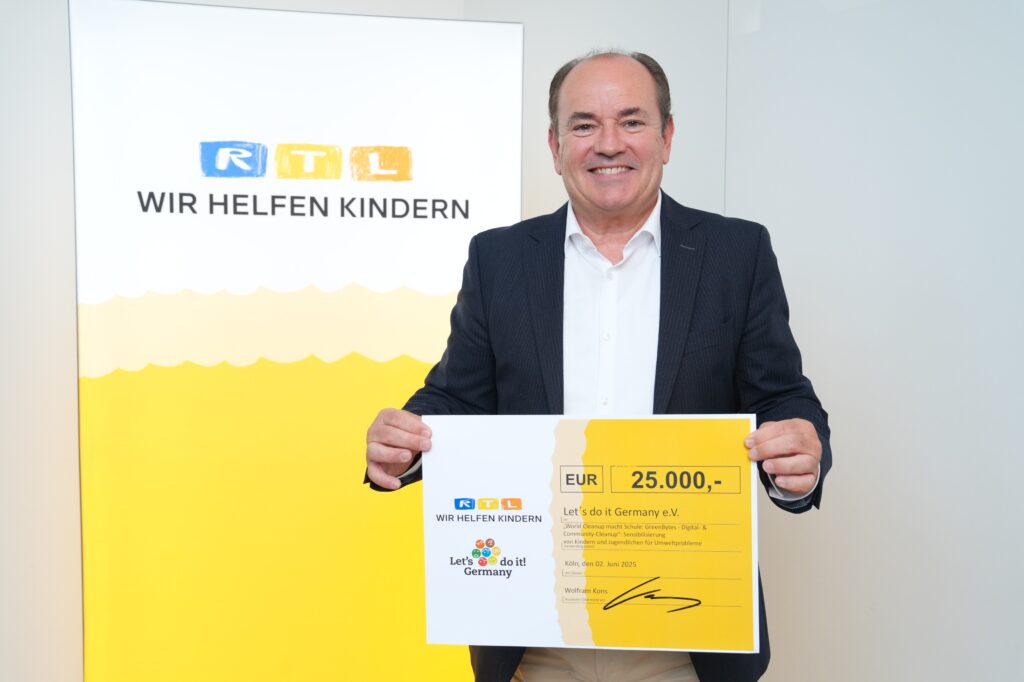 Am 2. Juni 2025 durften wir als Verein Let’s Do It Germany e. V. einen ganz besonderen Moment feiern: Im Rahmen der RTL-Stiftung „Wir helfen Kindern“ wurde unser Bildungsprogramm „World Cleanup macht Schule“ , konkret unsere Green Bytes Kampagne mit einer großzügigen Spende von 25.000 € gefördert.